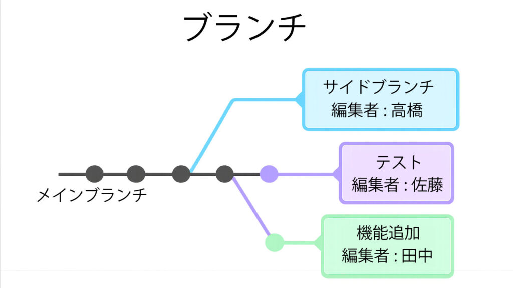 ブランチとは、プロジェクトの変更履歴を独立して管理するための仕組みです。