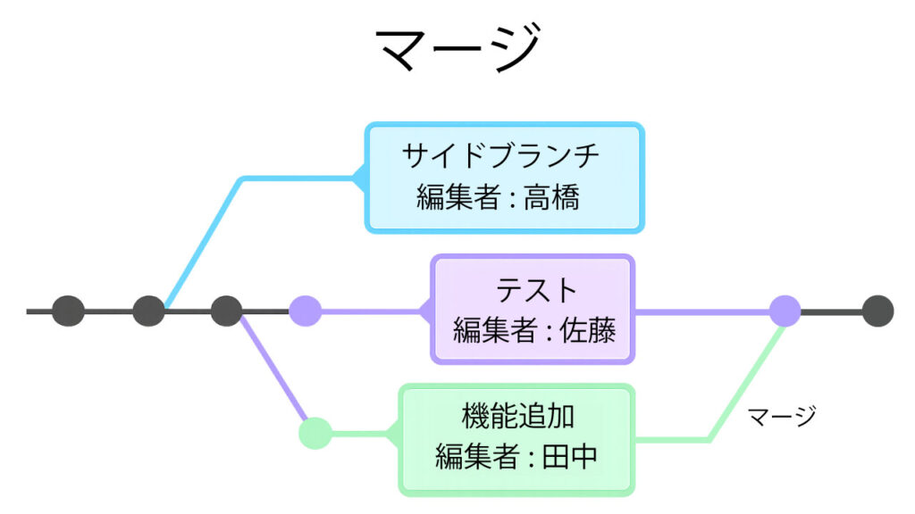 マージとは、異なるブランチで行った変更を一つにまとめる作業のことです。