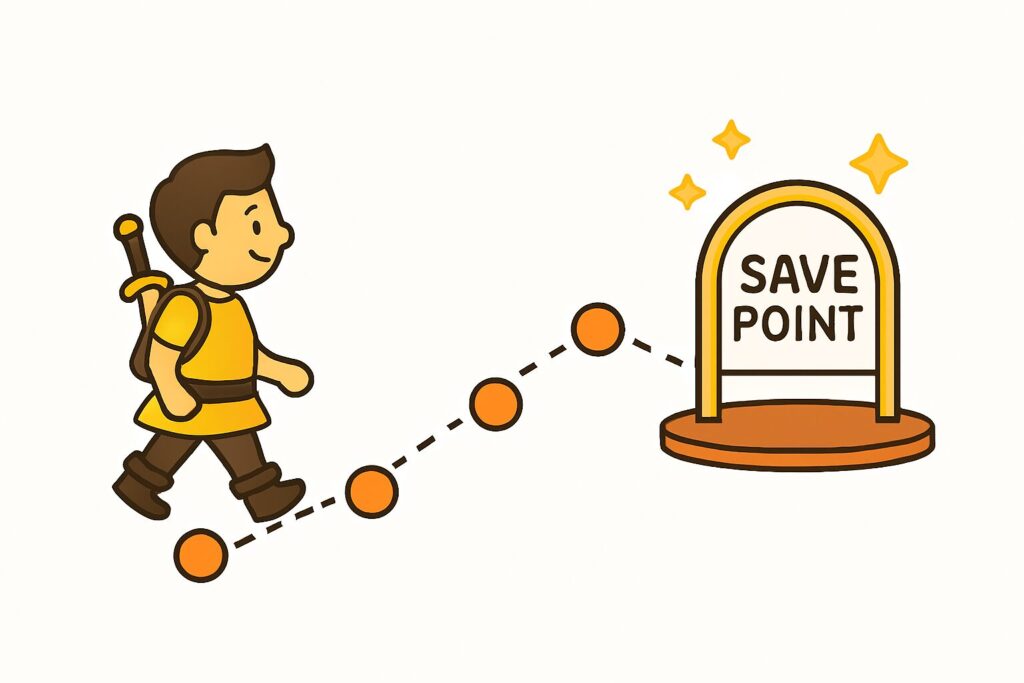 いわゆる「ゲームにおけるセーブポイント」を作成できるのがGitの強みと言えるでしょう。